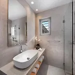 Located 4.7 km from Cine Manto Cinema, the welcoming Villa Frederica In Mykonos Super Paradise Beach features a swimming pool, a Turkish steam bath and a Jacuzzi, ensuring a relaxing stay. Boasting access to a terrace, the 6-bedroom and 6-bathroom villa invites guests to visit the Windmills of Kato Mili, located nearly 10 minutes away by car.