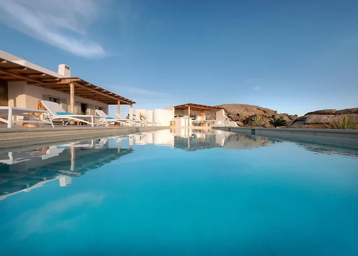 Com pátio, utensílios para churrasco e grelha para churrasco para o lazer dos hóspedes, a Villa Frederica In Mykonos Super Paradise Beach afável está situada a uma distância de 4.8 km da Pequena Veneza. Com banho de vapor turco, banho turco a vapor e jacuzzi, a propriedade fica a uma distância de 10 minutos de carro de Museu Marítimo de Aegean.